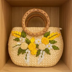 This Handmade Straw Tote Bag combines natural woven materials with stylish bamboo handles to create a beautiful and practical accessory for everyday use.