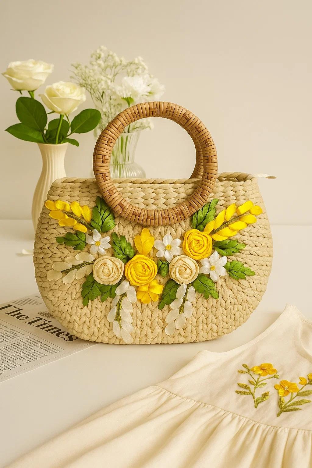 The lightweight woven design makes it perfect for beach outings, summer travel, shopping trips, or casual daily use. Its natural texture and minimalist style easily complement relaxed summer outfits and tropical fashion looks.
