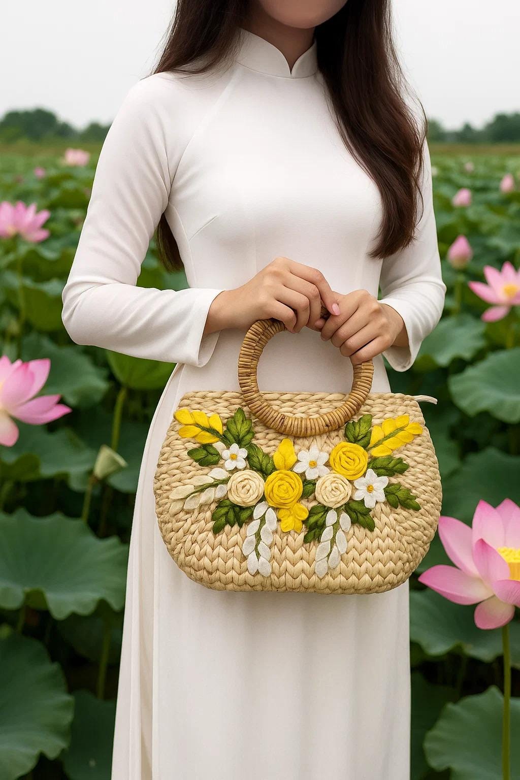 The bamboo handles provide durability while enhancing the bag’s natural aesthetic. Each bag is handmade, meaning subtle variations in weaving and texture may occur.