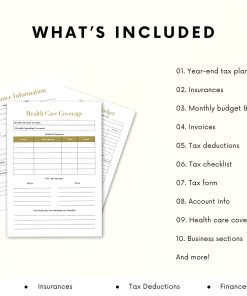 Stay organized and on top of your finances with this comprehensive Tax Planner. This planner includes sections for monthly budgeting and tracking of monthly expenses, making it easier to stay within your financial goals. Set and monitor your tax goals, track deductions, and keep all necessary tax forms and checklists in one convenient place. The planner also features a dedicated health care section, a business section for tracking expenses, and a tax tracker to ensure you don’t miss any deductions. Take the stress out of tax season and stay organized all year long with this handy Tax Planner.